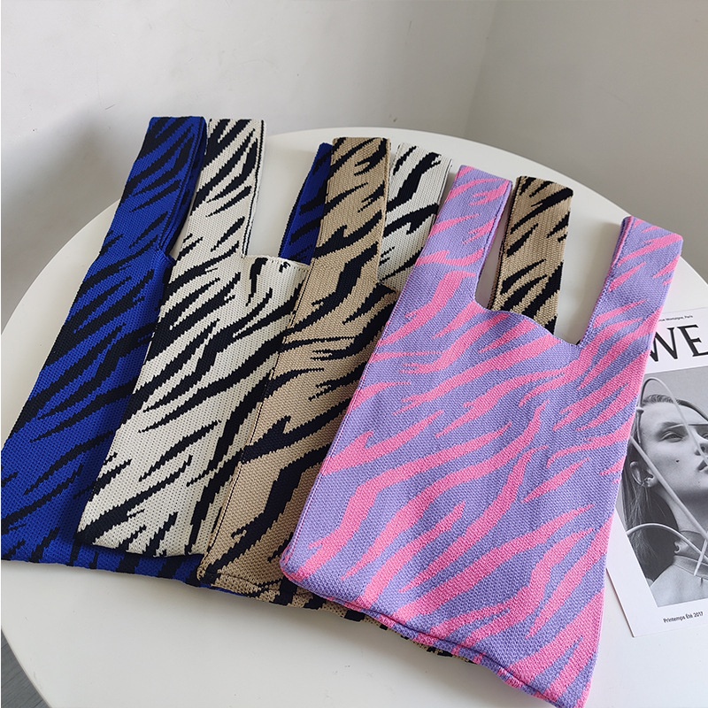 ❀ Chingu ❀ TW005 Tas Bene Korean Knitted Checkered Tote Bag Tas Rajut Garis Totebag Buffollow Vacay Viral Bangkok Import