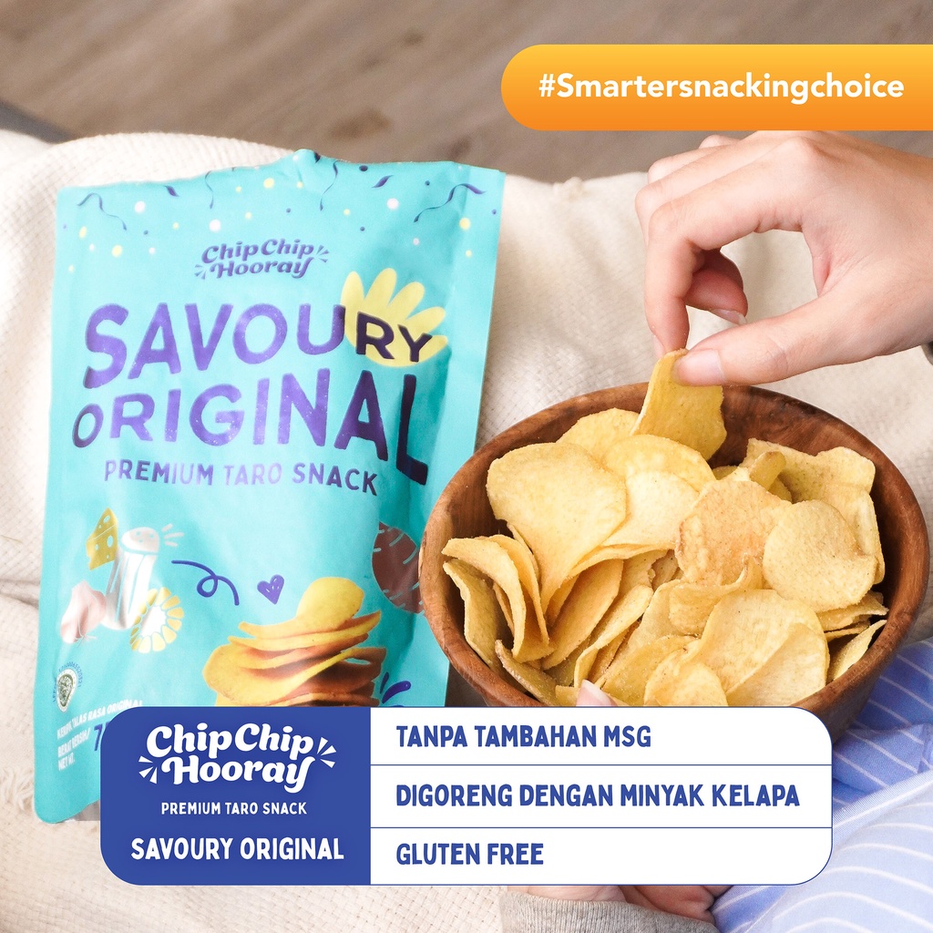 Chip Chip Hooray adalah snack keripik talas premium dengan beberapa varian rasa yang memanjakan lidahmu dengan pas. Dalam pembuatannya, Chip Chip Hooray diiris tipis untuk memaksimalkan kerenyahan saat dikunyah. Pembuatan keripik Talas ini menggunakan bahan-bahan yang sehat, sehingga kamu tidak perlu lagi khawatir saat nyemil.