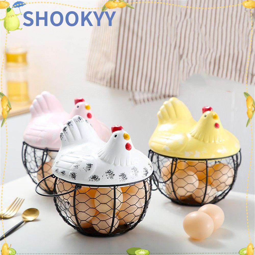 2.Warna mungkin sedikit berbeda untuk tampilan monitor yang berbeda, harap dipahami. Keranjang Penyimpanan Telur Rak Telur Baki Induk Ornamen Besi Keramik Ayam Kreatif Tahan Lama Organizer Dapur
