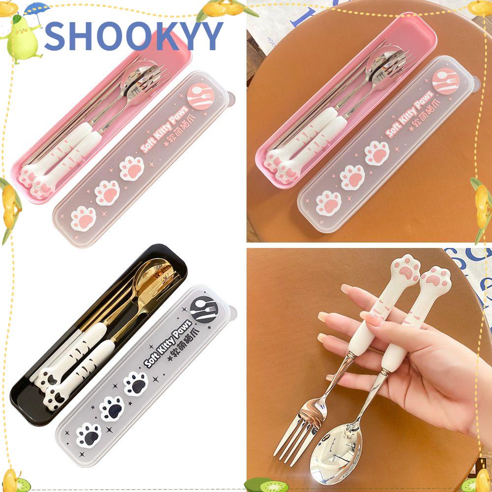 Perlengkapan Rumah > Peralatan Makan > Alat Makan > CHOOKYY Set Alat Makan Cat Paw Outdoor Dengan Kotak Penyimpanan Piknik Camping Travel Set Peralatan Makan Stainless Steel