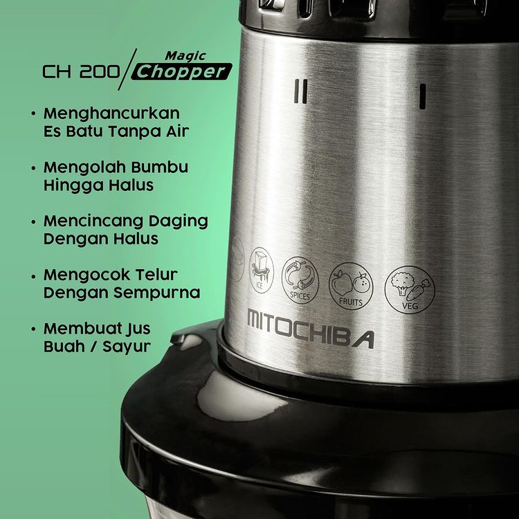 Detail Chopper Blender Mitochiba CH200 kapasitas 2 Liter - Resmi