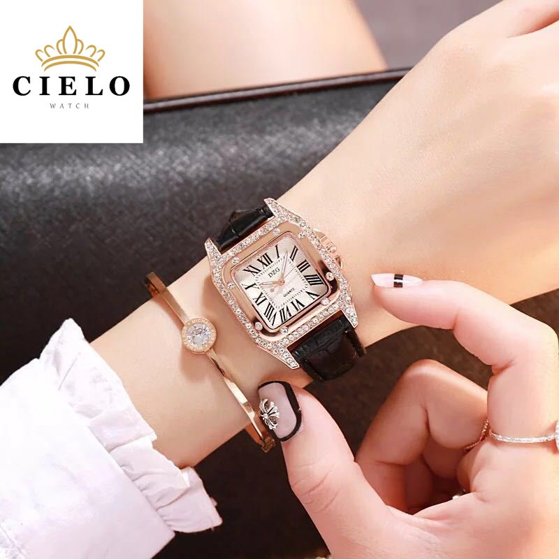 Jam Tangan > Jam Tangan Wanita > Analog > CIELO (COD)Jam Tangan Wanita Analog Quartz Accent Rhinestone PU Leather Strap Bracelet Watch Set Jam Tangan Wanita Mewah Stainless Steel Analog Dial Kotak Romawi Fashion Korean Style Import Fashion