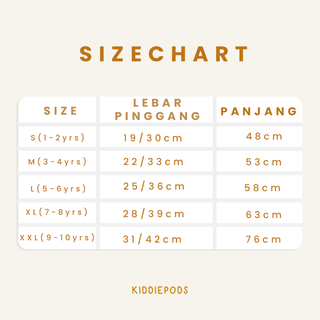 Note : - Usia hanya perkiraan, mohon untuk mengukur size anak sesuai sizechart. - Toleransi perbedaan ukuran 1-2cm.