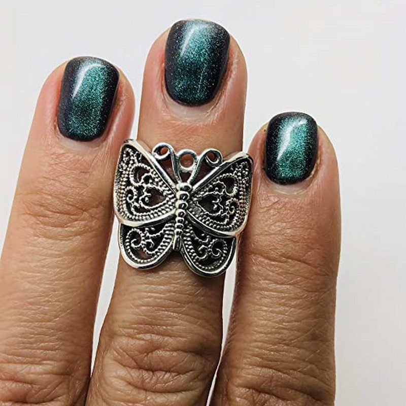 Detail Cincin Adjustable Desain Ukiran Butterfly Hollow out Gaya Vintage Untuk Pasangan