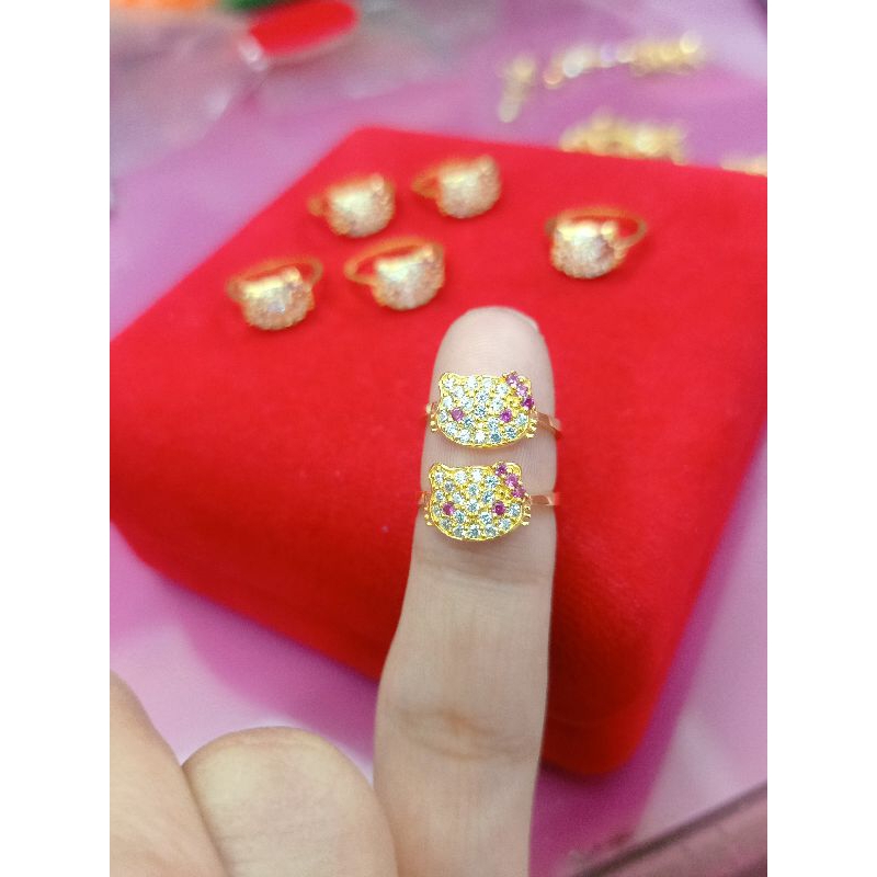 cincin anak helloo Kity perak 925 lapis mas berat 1 gr man Perhiasan perak yg kami jual dijamin asli perak/silver dengan kadar 92,5% yg sudah dilapisi emas 24k (perak kualitas import) sehingga warna, keawetan dan kualitasnya setara dengan emas asli. Tidak gatal dan tidak menyebabkan alergi warna tahan lama.