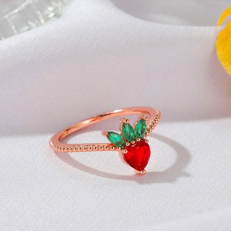 Detail Cincin Bahan Tembaga Desain Buah Aksen Zirkon Untuk Wanita