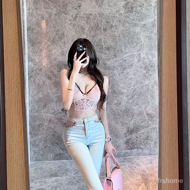 Detail Cincin baja putih renda seksi Prancis seksi kecantikan kembali tank top putih dengan set kamis renda