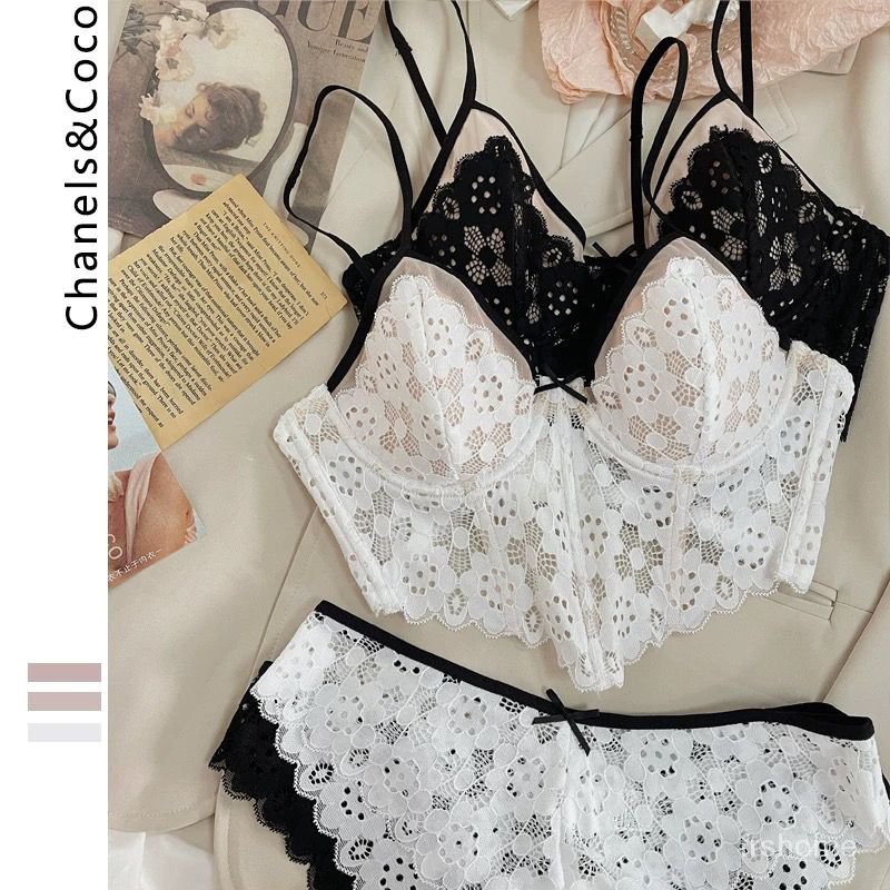 Cincin baja putih renda seksi Prancis seksi kecantikan kembali tank top putih dengan set kamis renda