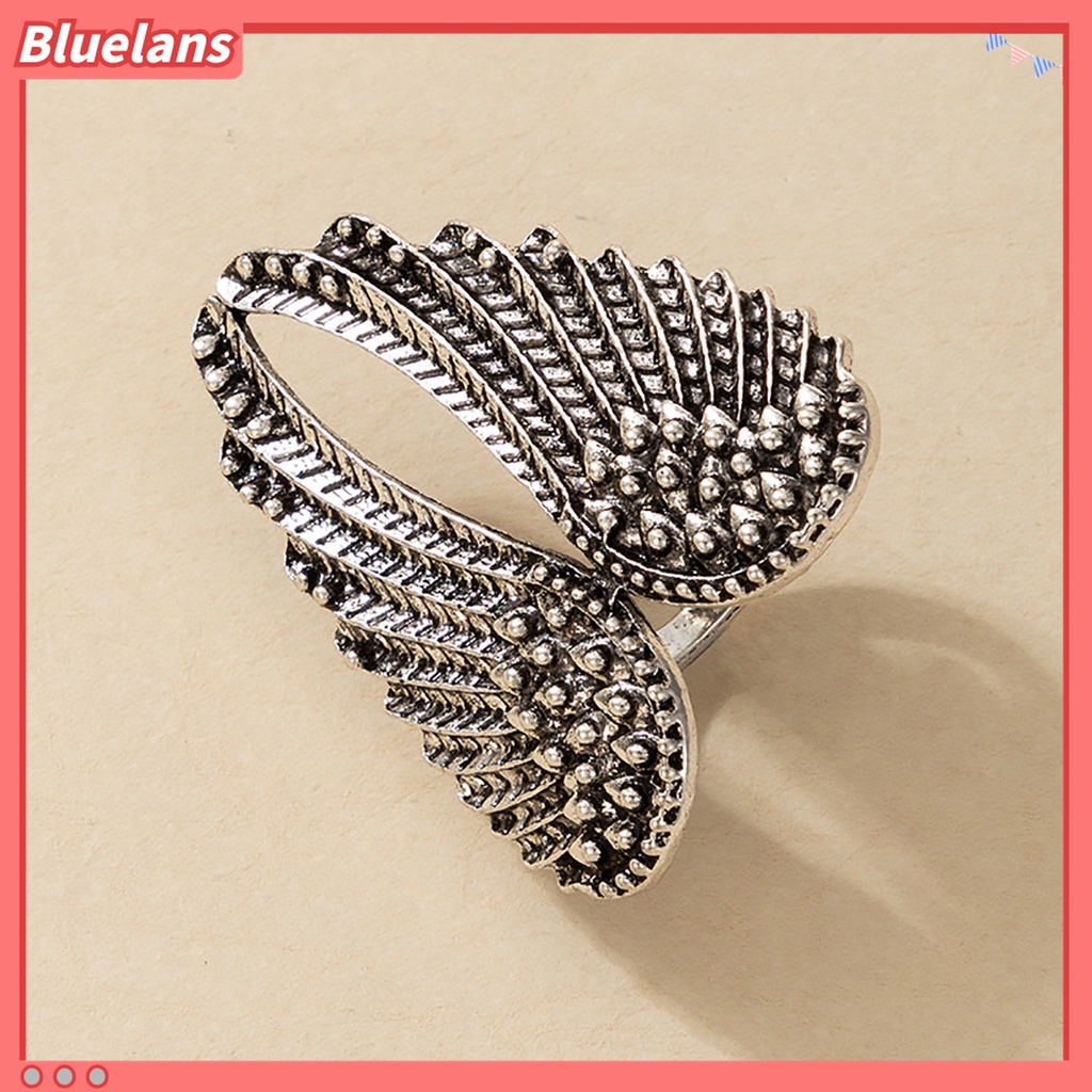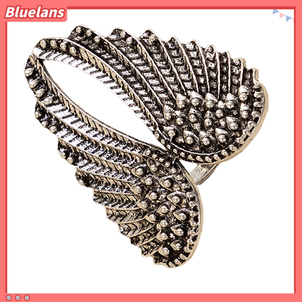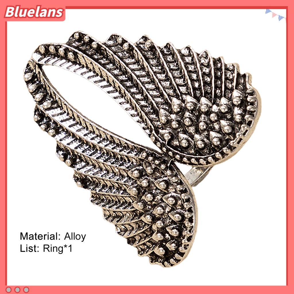 Detail Cincin Bentuk Sayap Malaikat Bahan Alloy Warna Silver Untuk Wanita