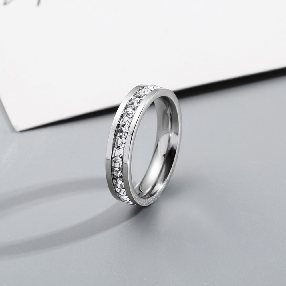Detail Cincin Berlian Bahan Stainless Steel Warna Silver Gaya Korea Untuk Hadiah Valentine