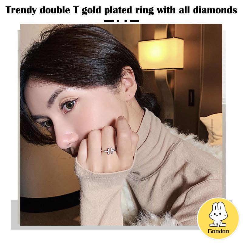 Detail Cincin Berlian Penuh T Ganda Trendi Cincin Berlian Berlapis Emas Wanita -Doo