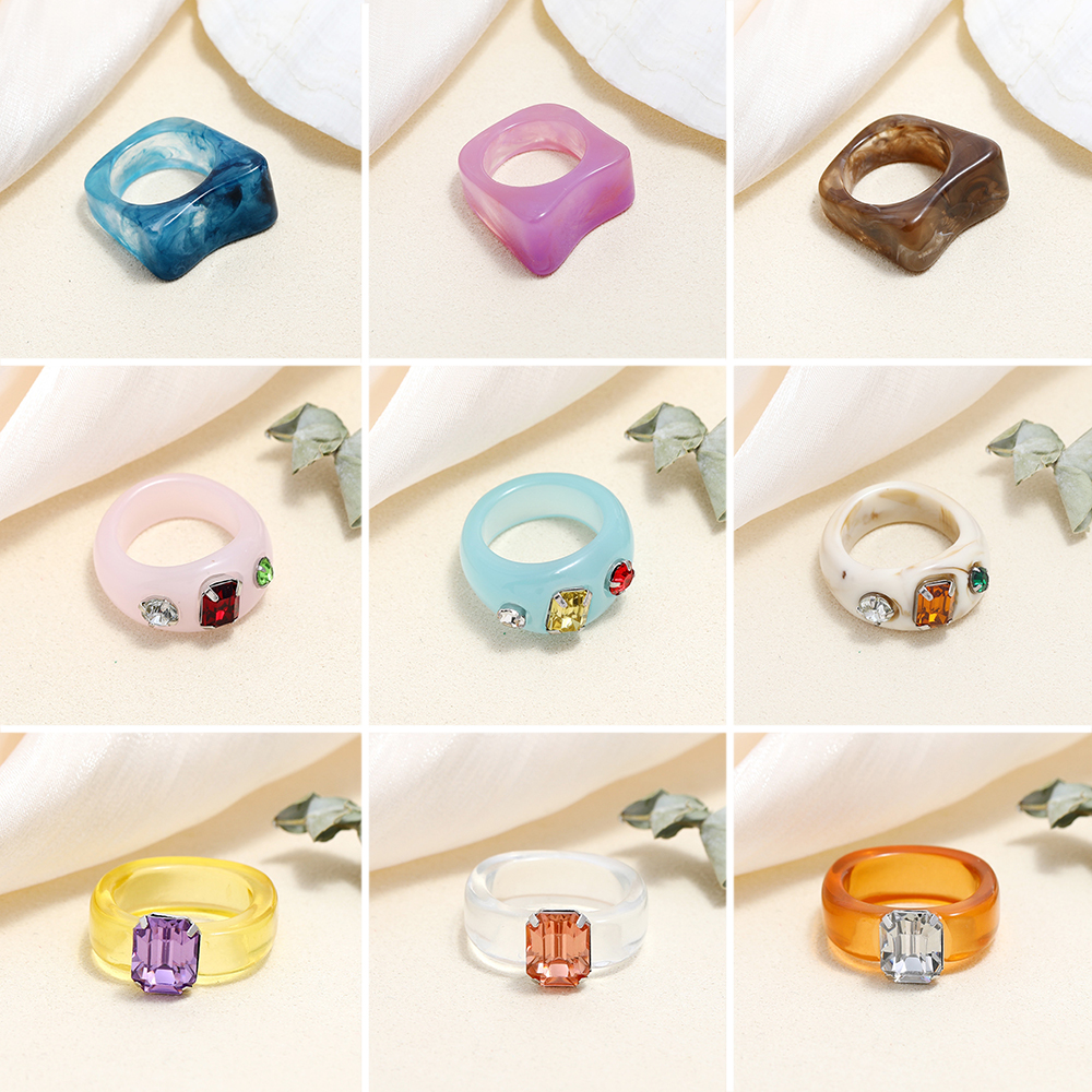 Detail Cincin Berlian Resin Transparan Gaya Retro Korea Untuk Aksesoris Perhiasan