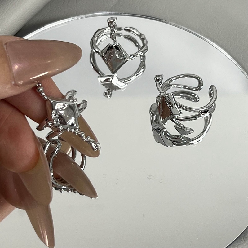 Aksesoris Fashion > Cincin > Cincin Bintang Silang Tidak Teratur Desain Baru Multilayer Punk Zirkon Bintang Ekor Terbuka Cincin Untuk Wanita Gothic Geometris Rings