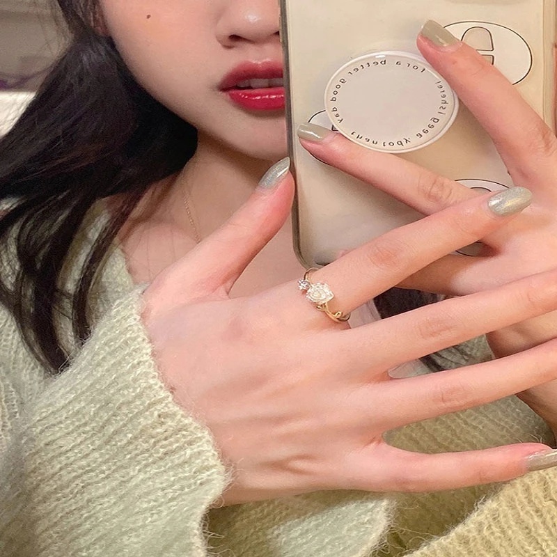 Detail Cincin Camellia Opening Adjustable Cantik Lembut/Cincin Jari Bunga Desain Niche Perempuan/Cincin Gadis Manis Perhiasan Pernikahan Pesta