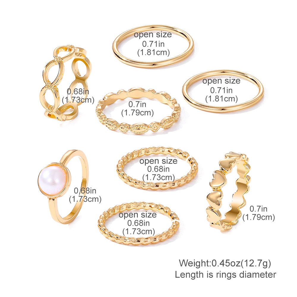 Detail Cincin Cinta Mutiara Antik Kreatif Sederhana Set Cincin Bersama 8-Piece
