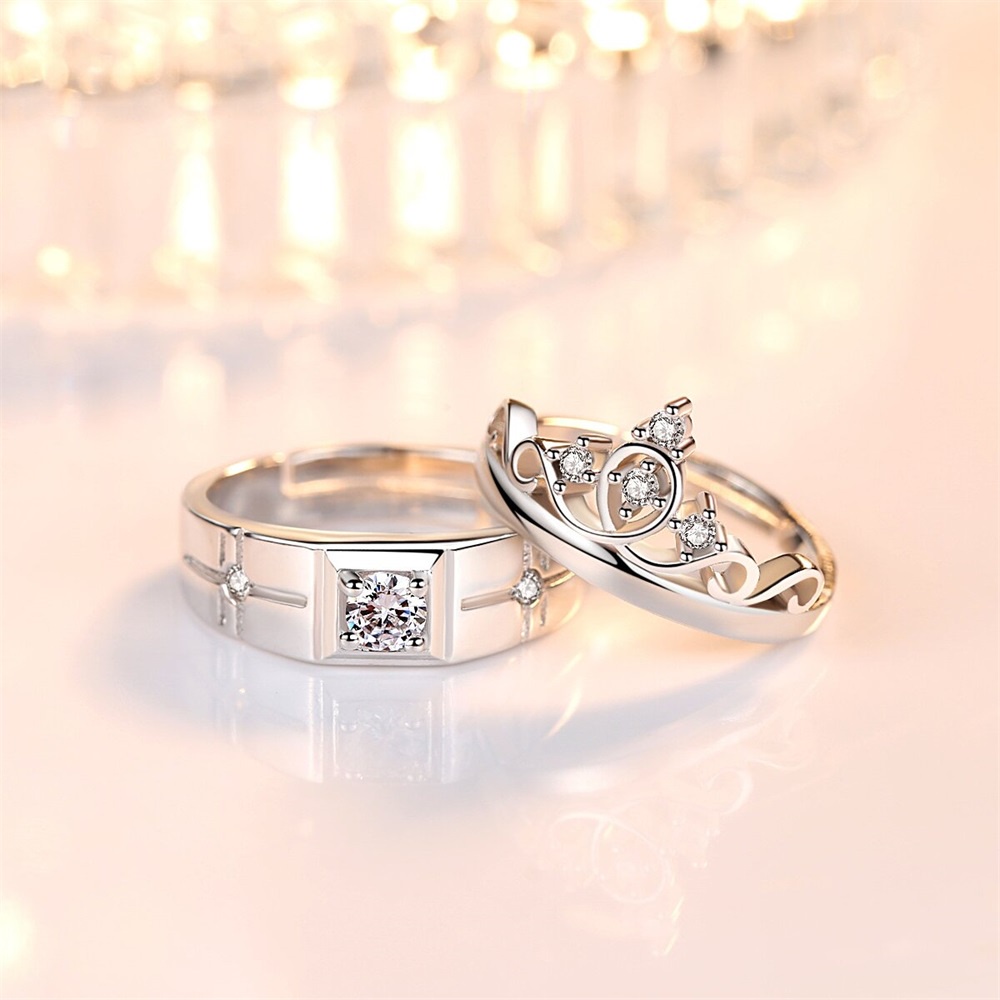 Detail Cincin Couple Mahkota Mewah Korea Pria Wanita Pembukaan Adjustable Wedding Ring Jewelry