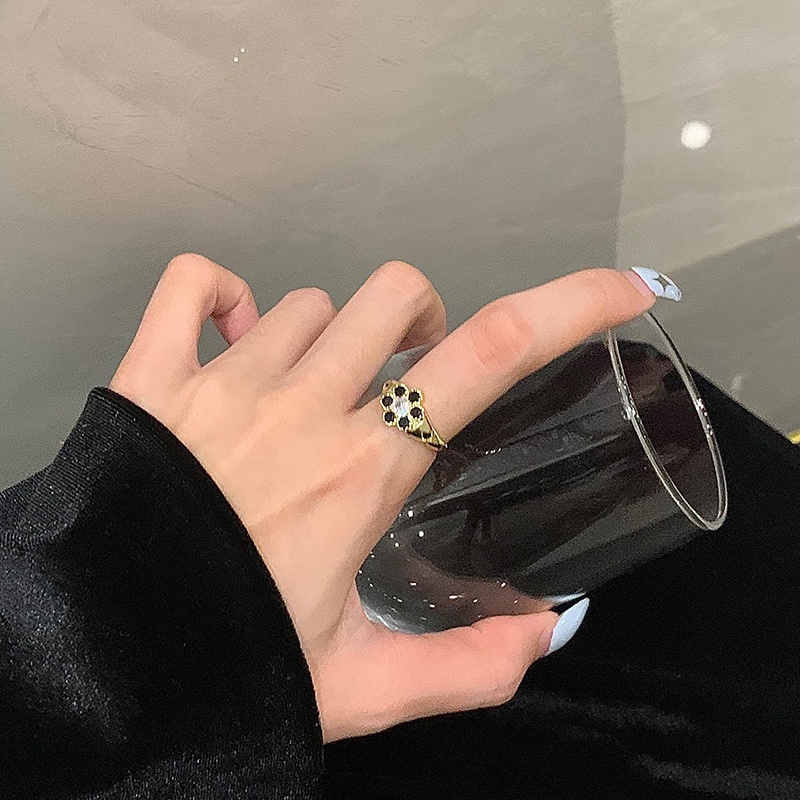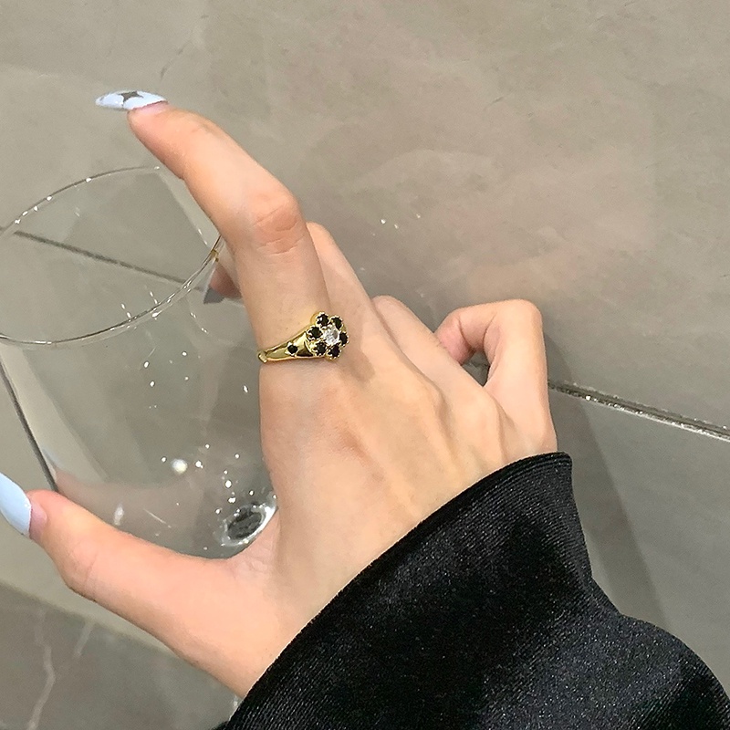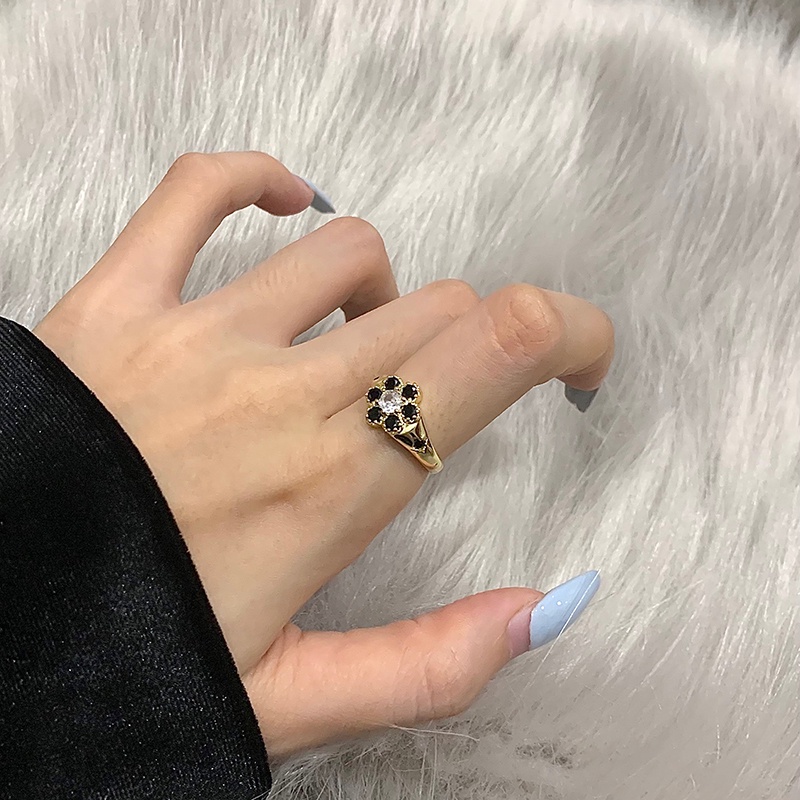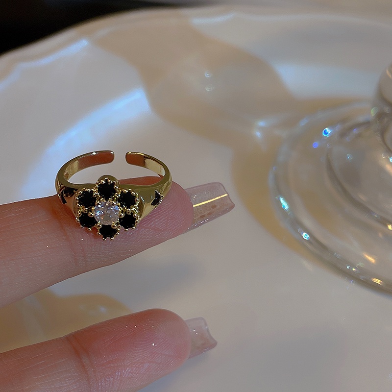 Detail Cincin Desain Bunga Aksen Zirkon Warna Hitam Gaya Korea Untuk Aksesoris