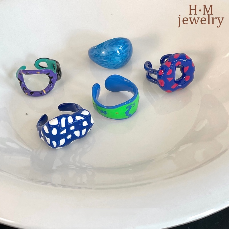 Detail Cincin Desain Geometri Motif Polkadot Warna Kontras