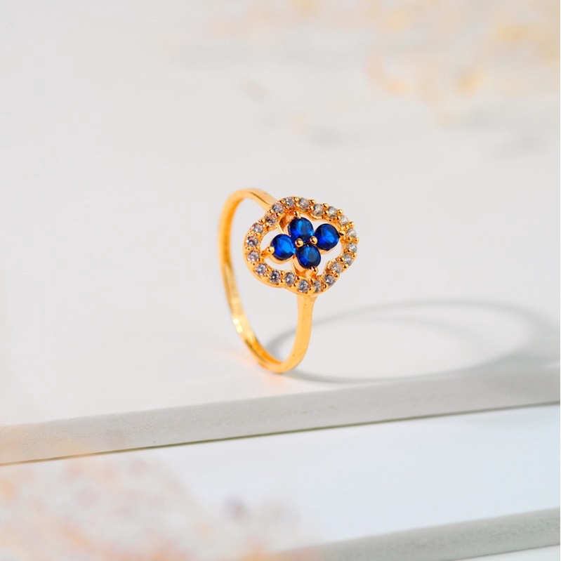 Cincin Emas 4 Mata Biru Variasi Mata Samping - Toko Emas Gadjah
