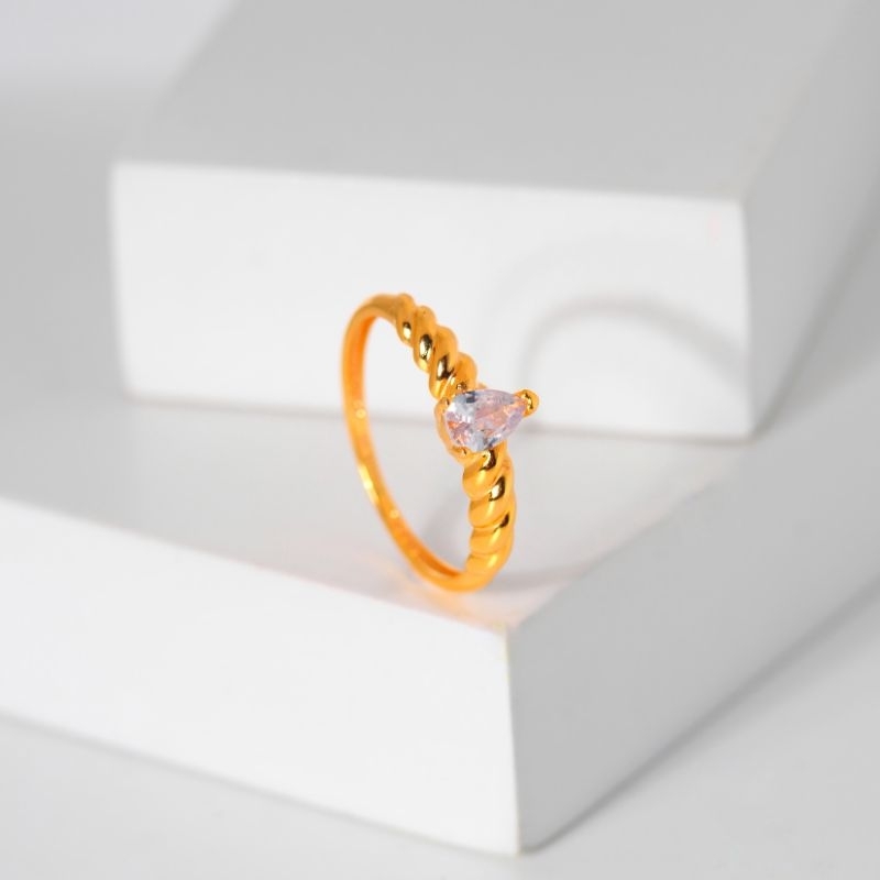 Cincin Emas Solitaire Tetes Air Plintir Samping - Toko Emas Gadjah