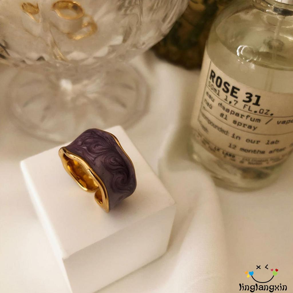 Cincin Terbuka Lebar Wanita, Tekstur Marmer Vintage yang Dapat Disesuaikan Cincin Jari Glasir yang Dapat Ditumpuk