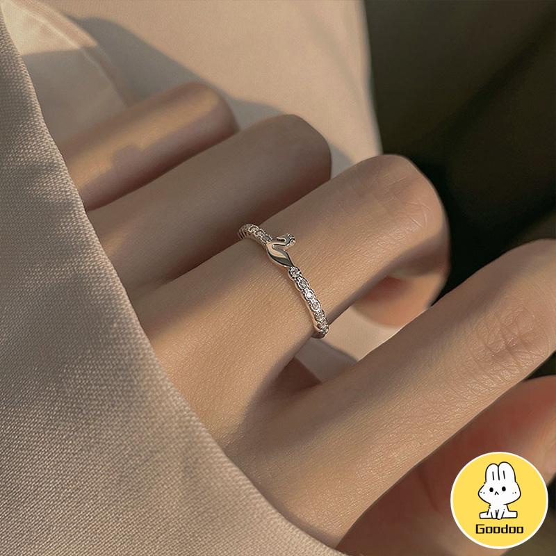 Detail Cincin Jari Telunjuk Bentuk Angsa Kecil Model Terbuka Untuk Wanita -Doo