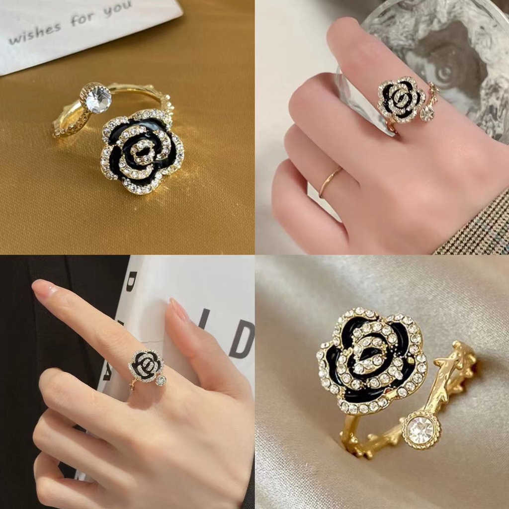 💛 Nama: Hitam Gunung Cincin Cincin Cincin Kamera Senior Wanita Desain Wewangian Kecil Cincin Banteng Angin