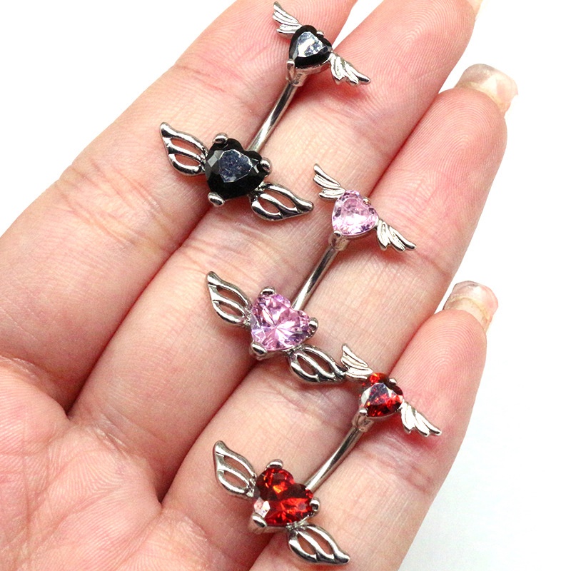 Aksesoris Fashion > Aksesoris Tambahan > Aksesoris Tambahan Lainnya > Cincin Kancing Perut Zircon Bahan Stainless Steel Gaya Punk Untuk Wanita/Perhiasan Tindik Pusar Hati Sayap Malaikat Cinta
