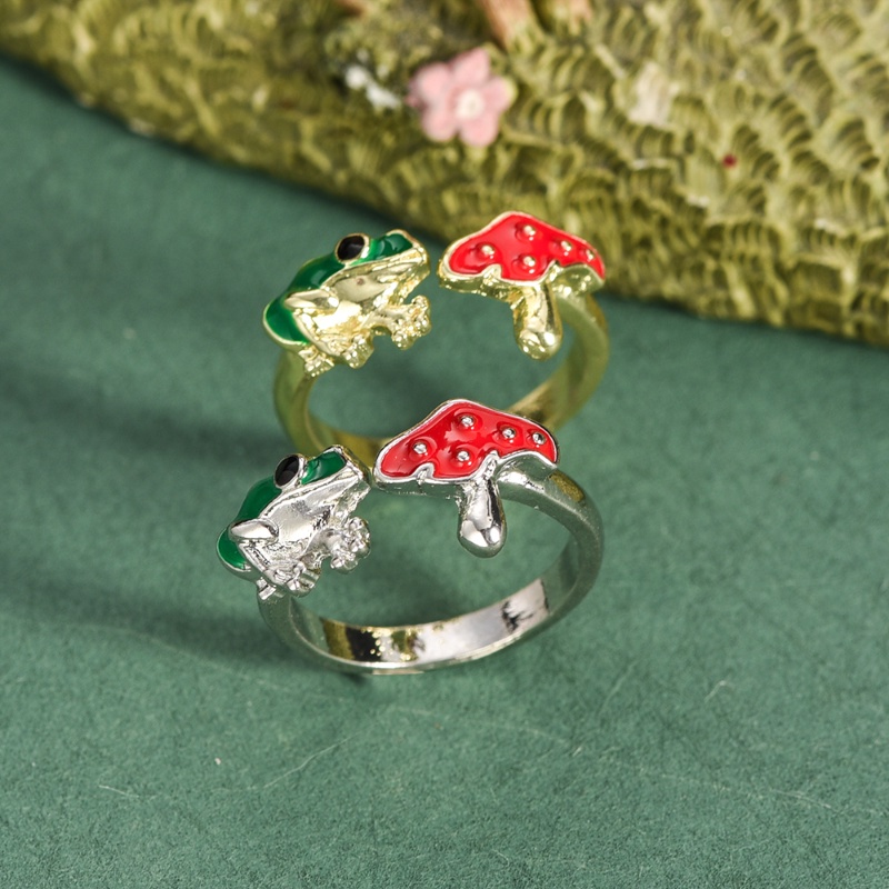 Spesifikasi Spesifikasi: Kategori: Cincin Bahan: paduan Warna: emas, perak Ukuran: diameter sekitar 21mm (terbuka, dapat disesuaikan) Pemodelan: katak, jamur merah Gaya Gaya: vintage, lucu Jumlah: 11 Paket berisi: 1 * cincin