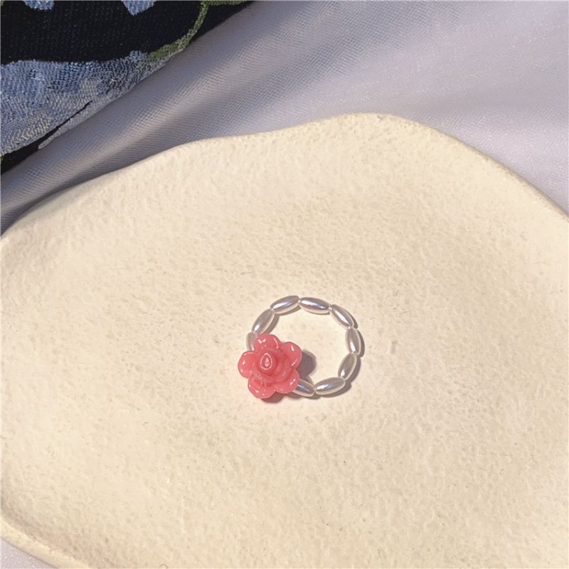 Detail Cincin Manik Korean Style Bunga Mawar Lucu Classy