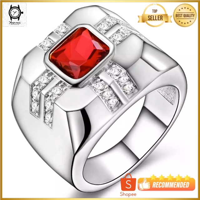 Cincin Merah Siam Mewah Ring Perak Elegan High Class