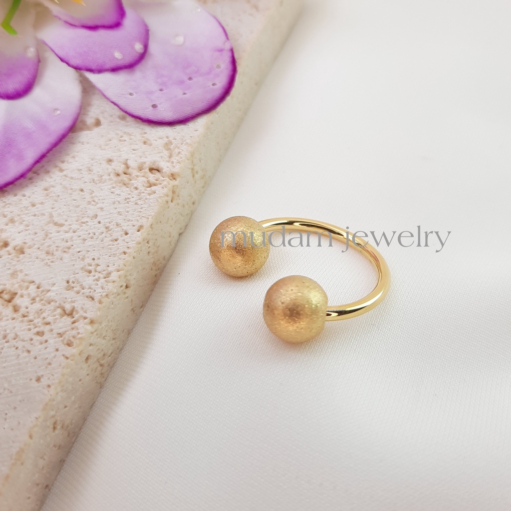 Kode Produk : CC-60600016 Model : Elegan Dan Fashion Bahan : Baja Titanium Prosesing : Lapisan Tekanan Tinggi Jenis Kelamin : Untuk Wanita Warna : Gold Size Cincin : 6, 7, 8 Diameter Bola : 0,8cm ( 8mm ) Pengemasan : Dikemas Secara Personal Barang Sesuai Gambar Asal : China PRODUK READY..