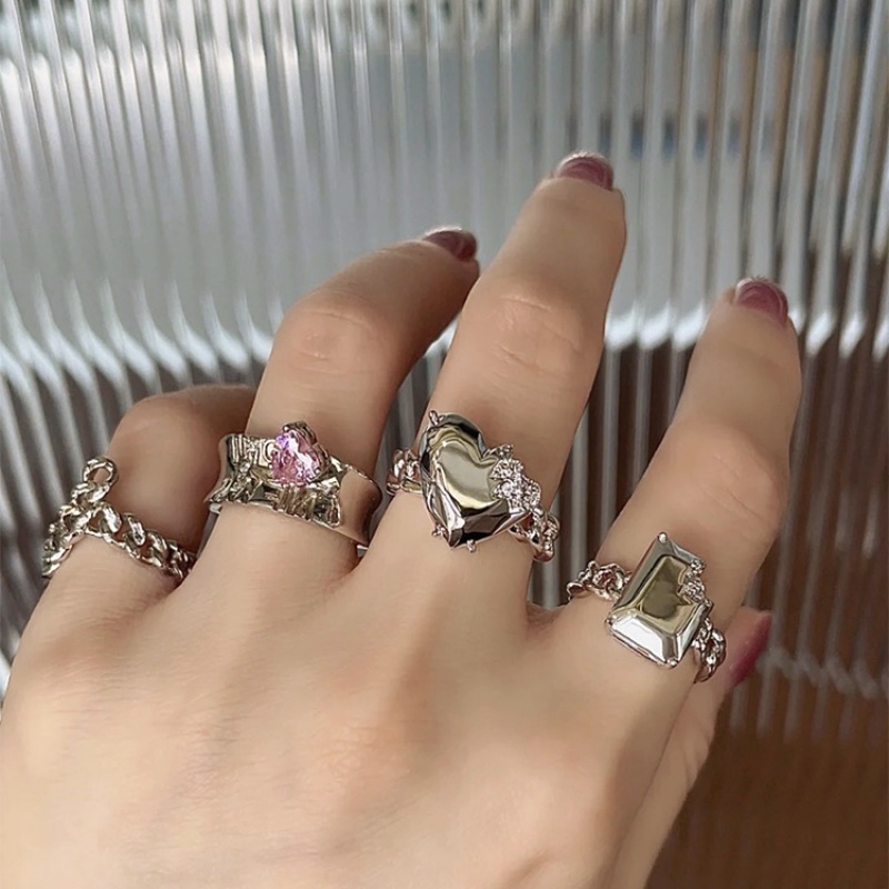Detail Cincin Model Terbuka Bahan Alloy Desain Hatipersegi Hias Zircon Gaya Trendy Untuk Wanita