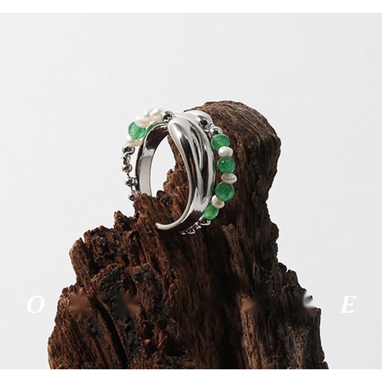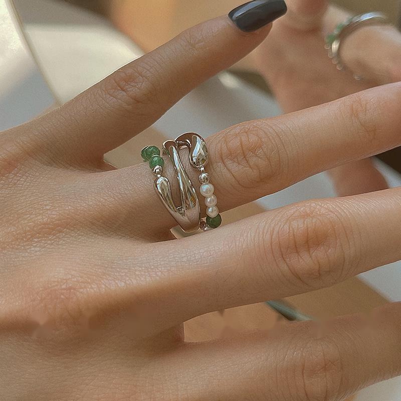 Detail Cincin Model Terbuka Banyak Lapis Gaya Retro Simpel Dengan Giok Hijau Untuk Wanita