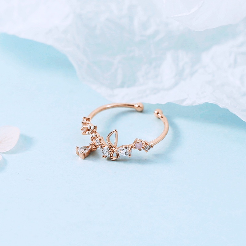 Detail Cincin Model Terbuka Dapat Disesuaikan Desain Bunga Hati Untuk Wanita