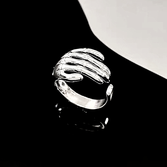 Detail Cincin Model Terbuka Desain Cakar Lima Jari Warna Silver Gaya Retro
