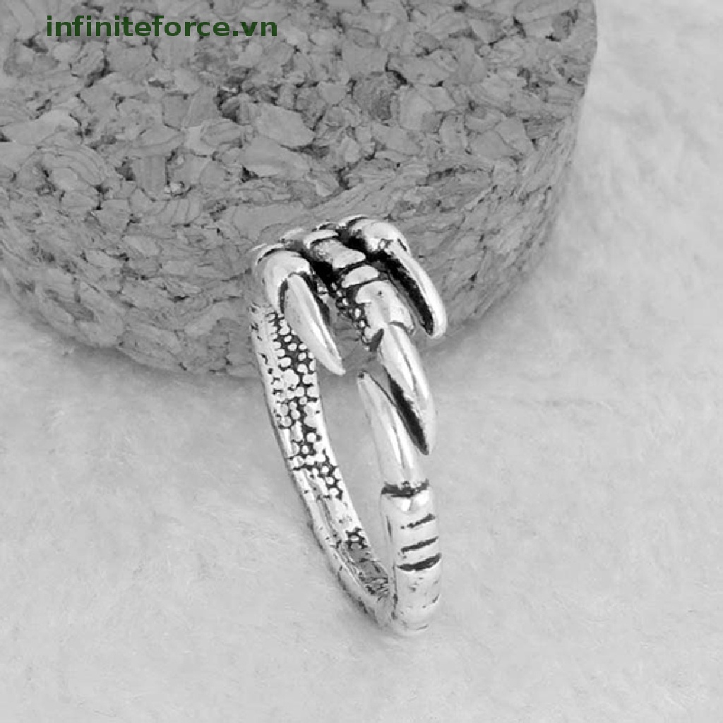 Detail Cincin Model Terbuka Adjustable Desain Cakar Naga Warna Silver Gaya Vintage Punk Untuk Pria