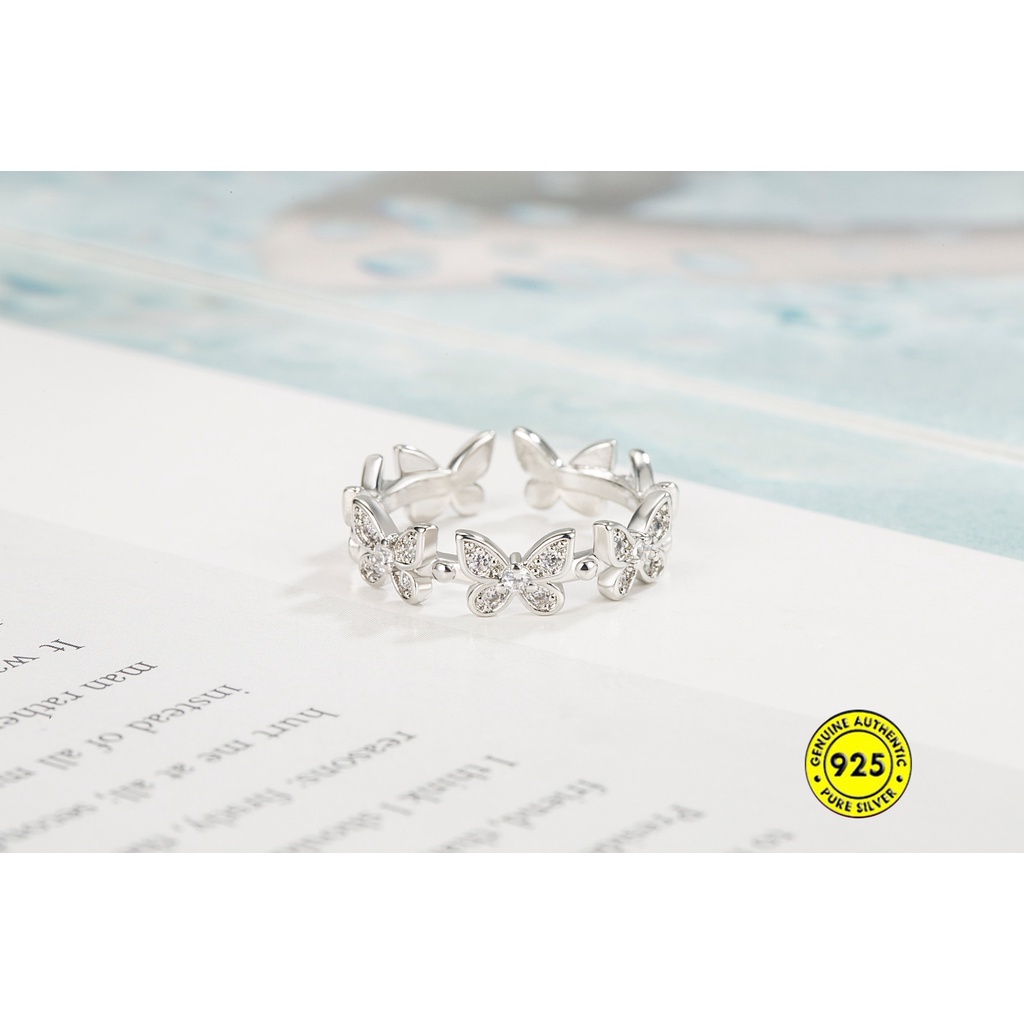 Detail Cincin Multi-Butterfly Berlian Penuh Temperamen Masuk Lux Open Ring Untuk Wanita U1523