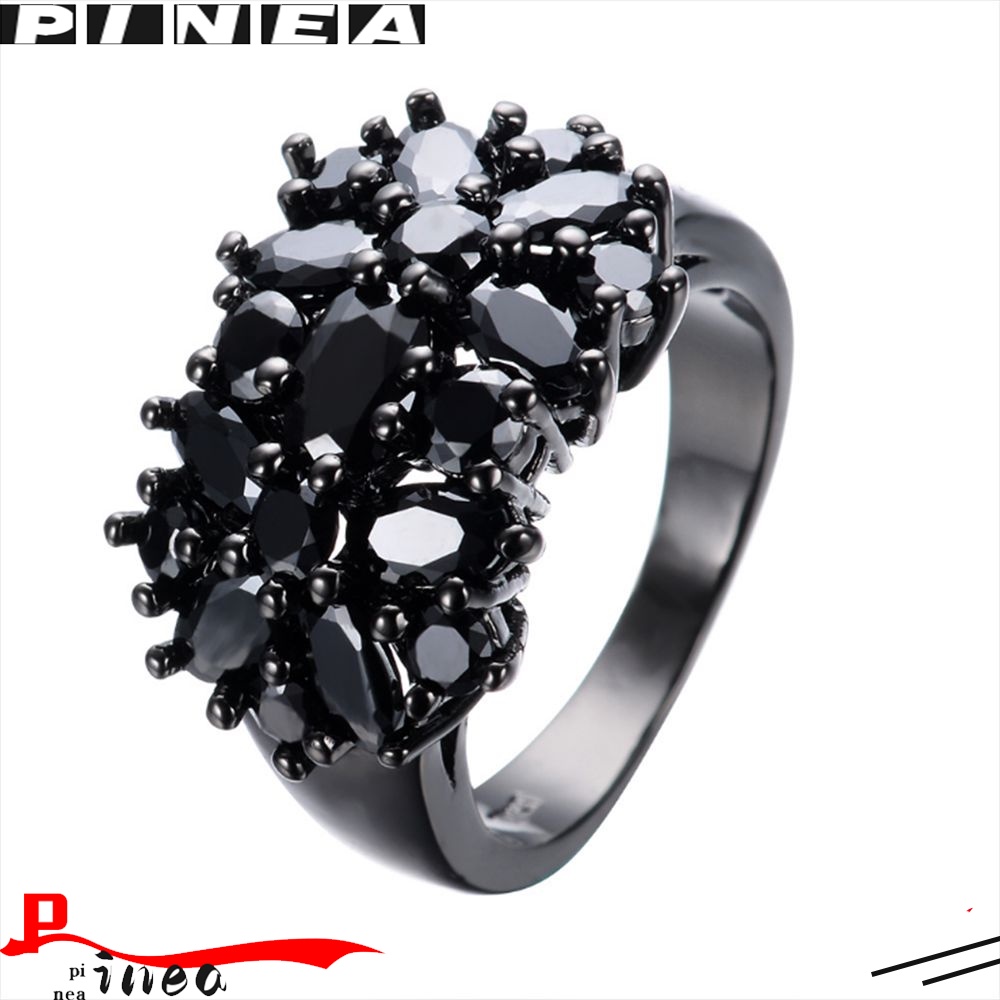 Karena perbedaan cahaya dan layar, warna item mungkin sedikit berbeda dari gambar. Cincin Hitam Oval Bertatahkan Perbatasan Unik Fashion Pernikahan Wanita Pria