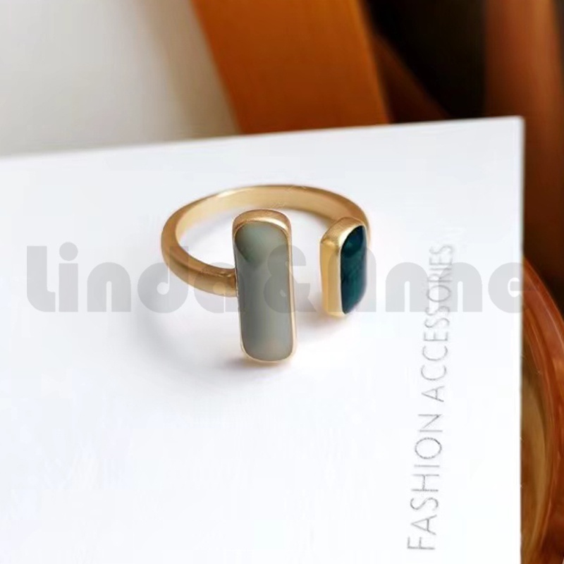 Detail Cincin Nicollina Sofia Cincin Persegi Hijau Cincin Fashion Adjustable Retro Ring Geometric