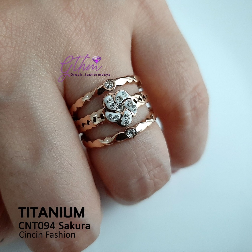 Aksesoris Fashion > Cincin > Cincin Ori Titanium Sakura Mata Rose Gold Awet Anti Karat Bisa dipakai sehari-hari Perhiasan Fashion Import Premium cnt094