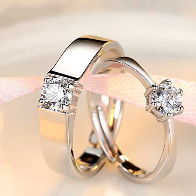 Detail Cincin Pasangan Model Terbuka Bahan Platinum Plated Gaya Korea Untuk Pernikahan