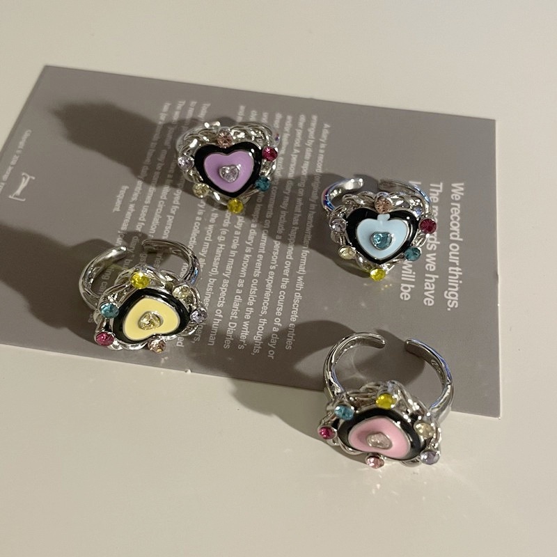 Detail Cincin Pembukaan Geometris Hati Bahan Alloy Kristal Berlian Imitasi Fashion Untuk Wanita
