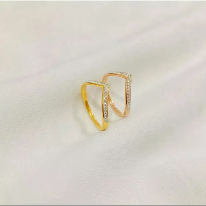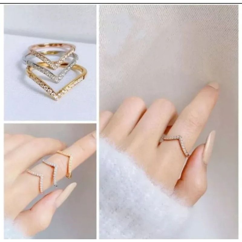 Detail Cincin permata model V titanium cincin Aurel Fuji Cincin model terbaru stainles steel
