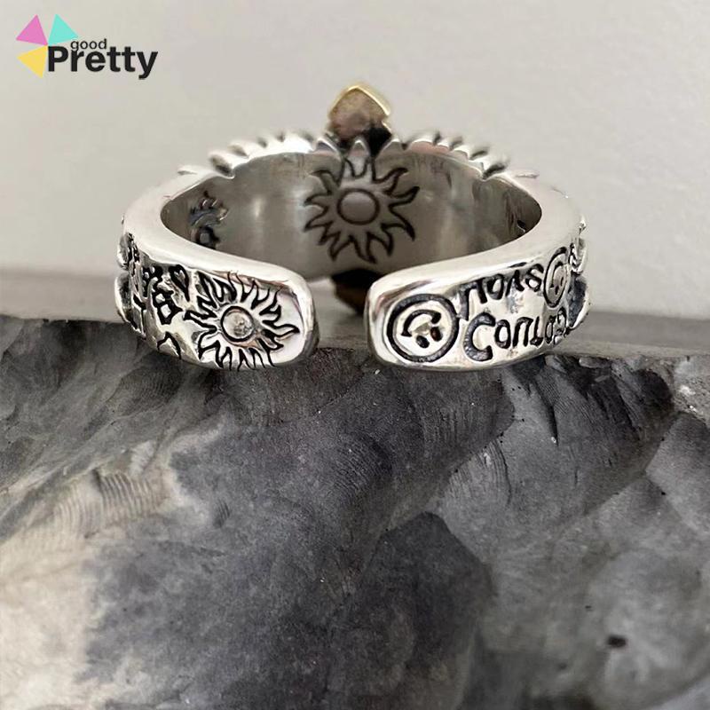 Vintage Wings Cross Grafiti Surat Terbuka Cincin Pribadi Pria Cincin
