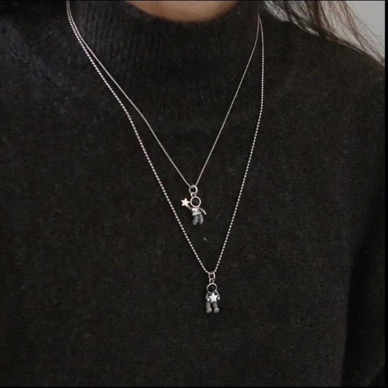 Detail Cincin Rantai Desain Wajah Astronot Warna Silver Gaya Korea Untuk Pria Dan Wanita