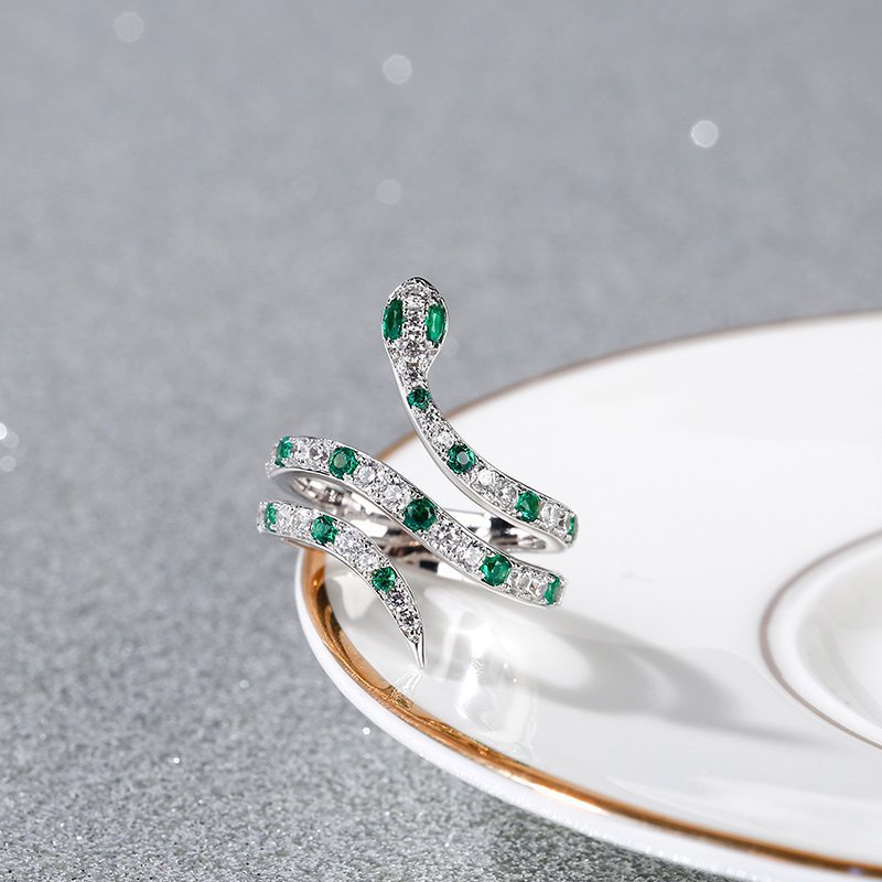 Detail Cincin Silver Plated Bentuk Ular Hijau Untuk Wanita