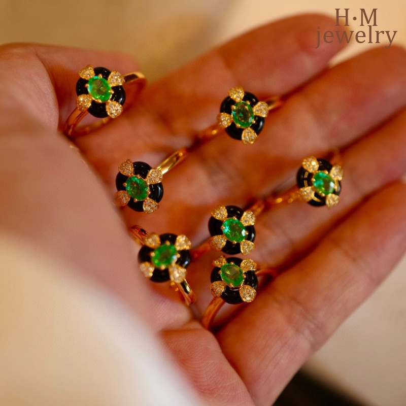 Detail Cincin Silver S925 Hias Batu Akik Emerald Hitam Gaya Vintage