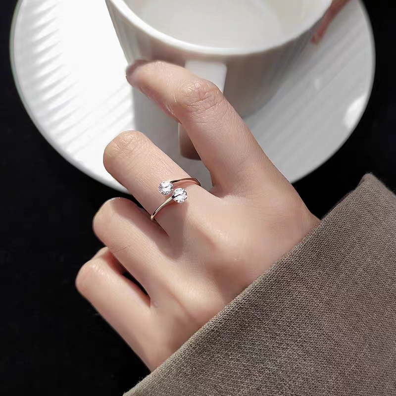 Detail Cincin Silver Sterling Simple Elegan Dengan Kristal + Berlian Imitasi Untuk Wanita