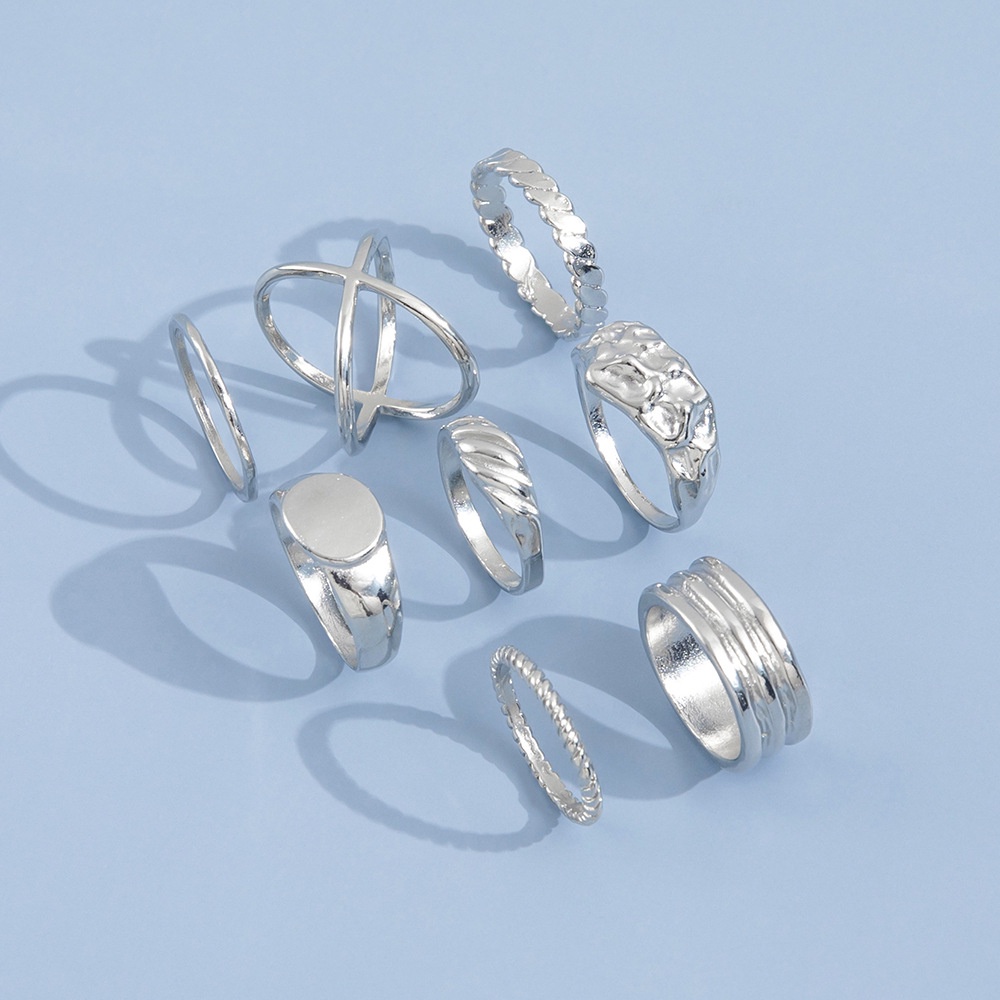Detail Cincin Tidak Teratur Mode Sederhana Pribadi Cincin Bersama Logam Temperamen Set 8-piece Set